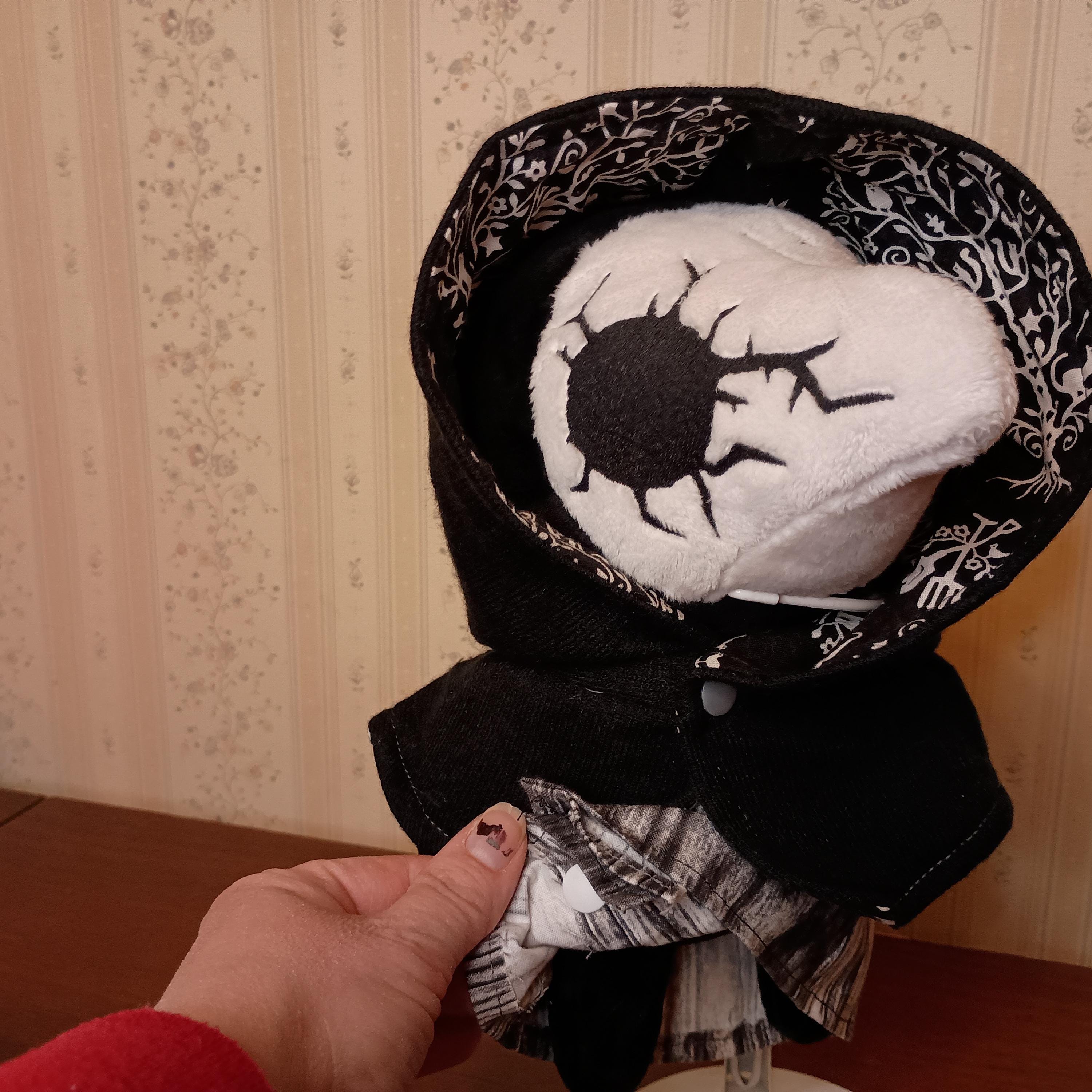 This is the lovely lady plague doctor plushie. She is looking for her forever home.