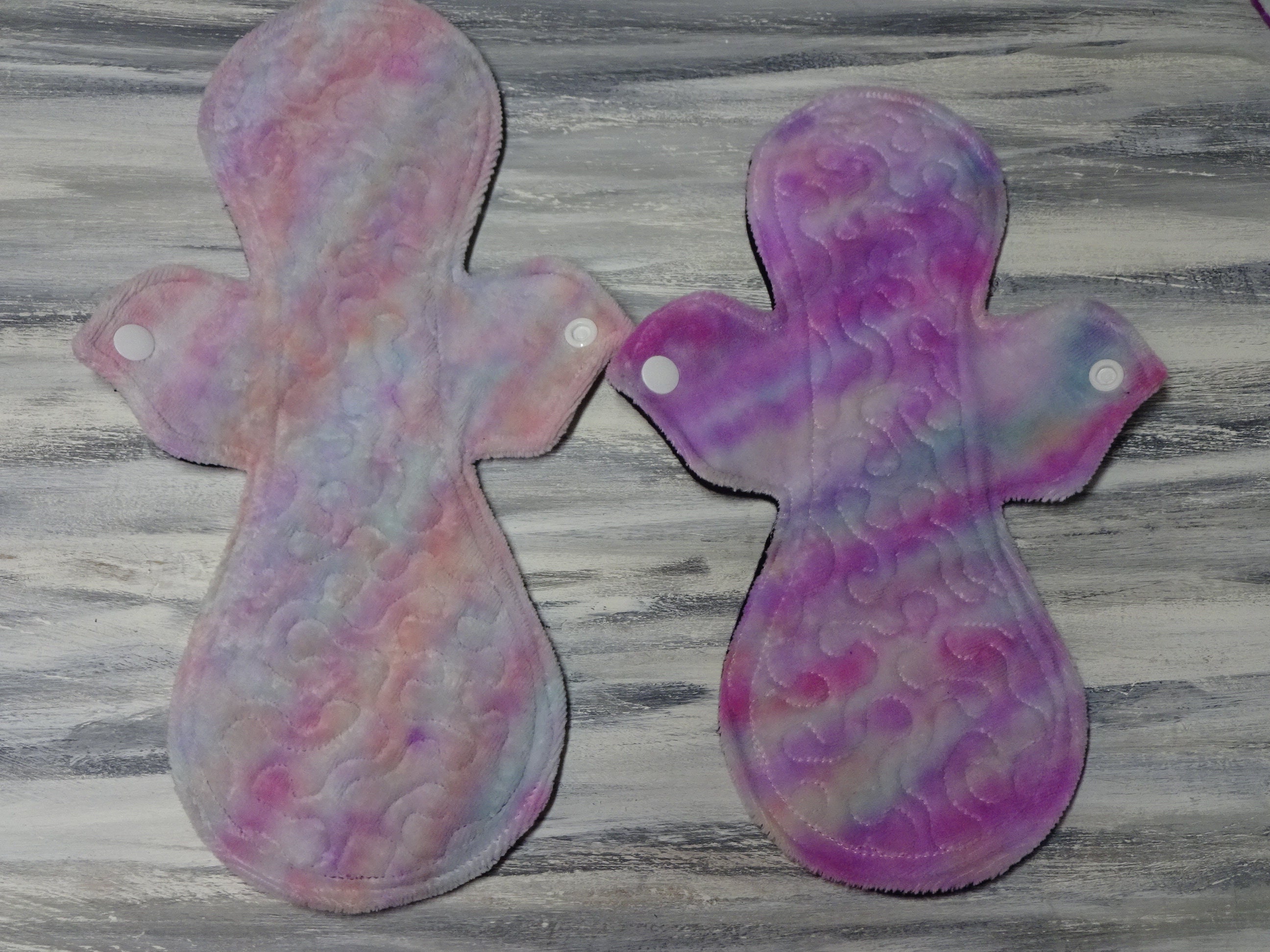 Quilted cloth pads offer something unique and not found in other brands of pads- These pads are able to absorb liquids fast due to the hundreds of micro pin pricks throughout the pad layers. Similar to the store bought disposable maxi pads- but you will never go back to those after trying these. Ever. The luxurious feeling of these pads is like no other. These will handle light all the way to very heavy menstrual bleeding and gushing(depending on the flow you choose), Menorrhagia, menopause, post surgery bleeding, postpartum, and urinary incontinence / bladder leakage.